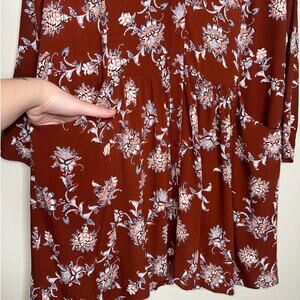 Garnet Hill Long Sleeve Knee Length Floral Dress Patch Pockets Burnt Orange 6