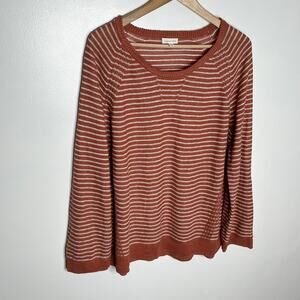 Garnet Hill Long Sleeve Organic Linen Sweater Womens XL Orange Stripe Casual