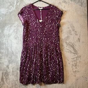 Garnet Hill Marina Crepe Dress in Size Medium with a beautiful purple floral pattern. This dress is brand new and offers a relaxed and comfortable fit.