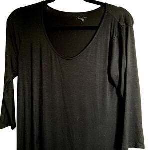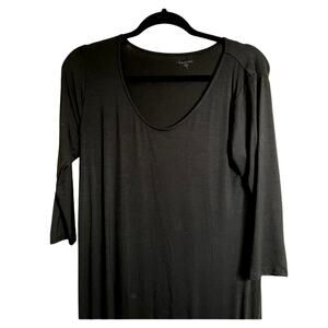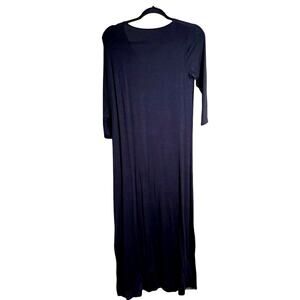 Garnet Hill Maxi Dress Womens Small Black V-neck Soft Tencell Fabric Minimalist