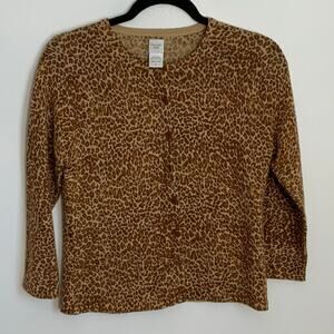 Garnet Hill Merino Leopard Cardigan size small