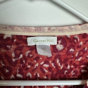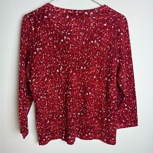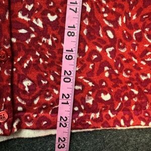 Garnet Hill Merino Wool Cardigan Sweater Animal Print Red Medium