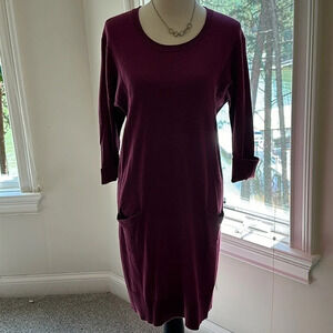 Garnet Hill Merino Wool Sweater Dress, Size Small, Berry Color, EUC