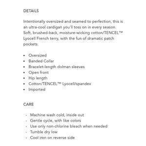 Garnet Hill NEW Green 3/4 Dolman Sleeve French Terry Kimono Relaxed Cardigan S