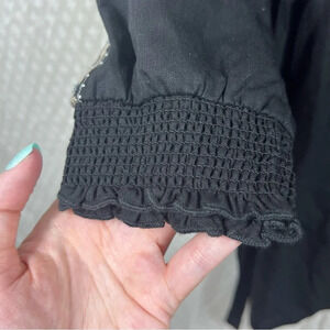 Garnet Hill NWT Black Embroidered Long Sleeve Tie Waist Dress