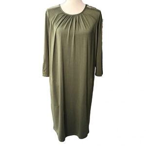 Garnet Hill (NWT) Olive Green Luna Lace-Inset Knit Dress Size Medium