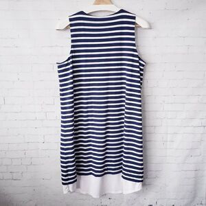 Garnet Hill Nautical Navy White Striped Dress Size M Shift Stretch Tank Cotton
