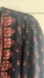 Elegant blouse with intricate burgundy patterns. Flowy design with long sleeves. Measures 23 inches pit to pit; 28 inches in length.