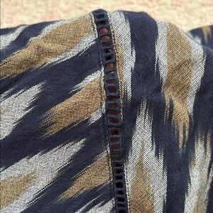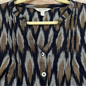 Garnet Hill Navy Tan Ikat Blouse Top 100% Cotton Puff Sleeve Size Small Fall