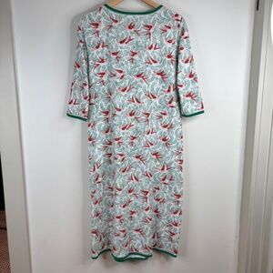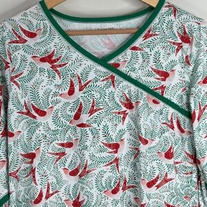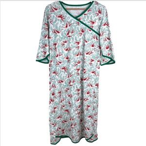 Garnet Hill Nightgown S Asian Wrap Organic Cotton Midi 3/4 Sleeve Christmas Bird