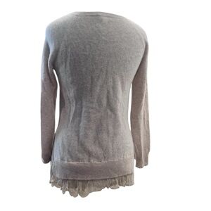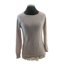 Garnet Hill Oatmeal Cashmere Sweater with Silk Lace Detail Small