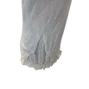 This super soft cashmere sweater from Garnet Hill features a silk chiffon lace hem detail. Wide scoop neck is very flattering. The measurements are provided in the photographs, but will fit to a 34 inch bust. Tunic length.