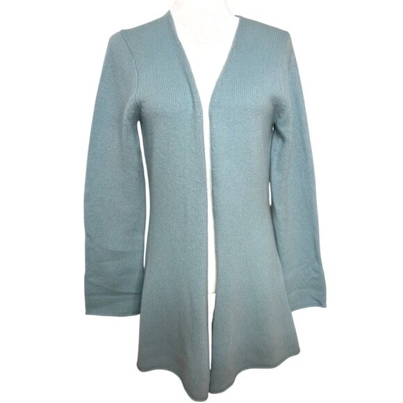 Garnet Hill Open Front Cardigan Sweater Blue Lambswool Angora Blend Size Small