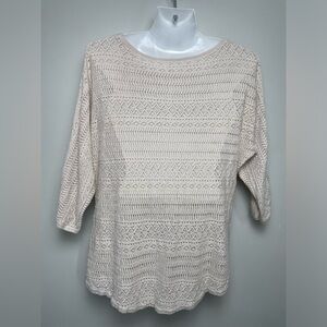 Garnet Hill Open Knit See through Top Tan Linen Organic Cotton Blend Medium