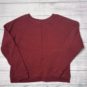 Garnet Hill Organic Cotton Quilted Crewneck Relaxed Pullover Sweatshirt Maroon M