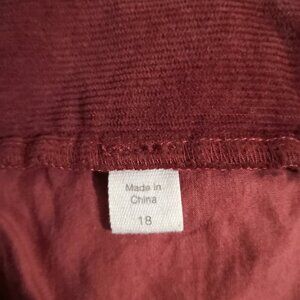 Garnet Hill Organic Cotton Slim Corduroy Pants Rustic Red Size 18