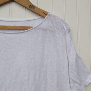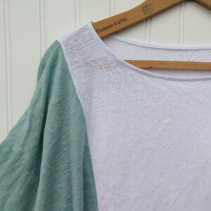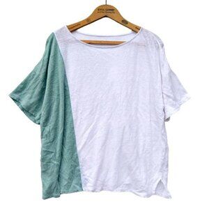 Garnet Hill Organic Linen Color Block Tee Size S Green White Boxy Jersey Knit