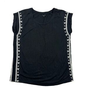 Garnet Hill Organic Linen Embroidered Tee Shirt Black Size Large