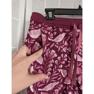 Garnet Hill Organic-Pima-Cotton Flannel Joggers Maroon Bird Floral Size XS NWT