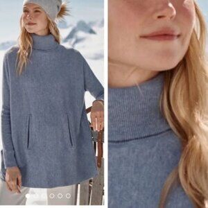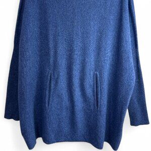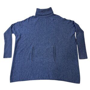 Garnet Hill Oversized Turtleneck Sweater Size S Wool Cashmere Kangaroo Blue