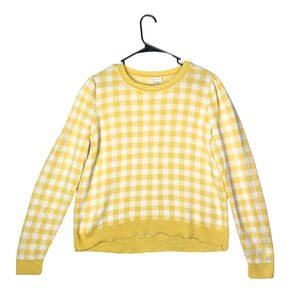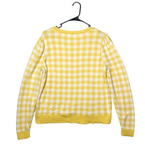 Garnet Hill Pima Cotton Sweater M Butter Yellow White Gingham Preppy Knit Peru