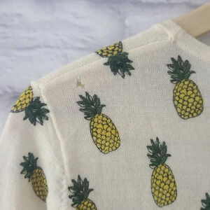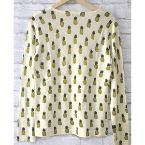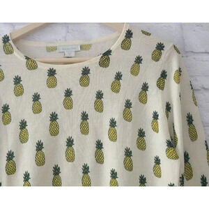Garnet Hill Pineapple Sweater Women's Medium Cream Merino Wool Long Sleeve