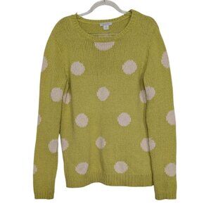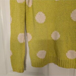 Garnet Hill Polka Dot Sweater Womens Size Small Chartreuse Yellow Knit Cotton