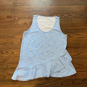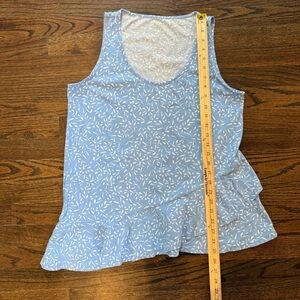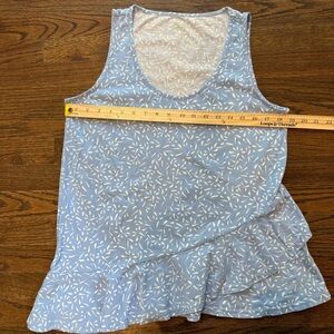 Garnet Hill Powder Blue Asymmetrical Ruffle Tank for Spring Summer Green Cotton