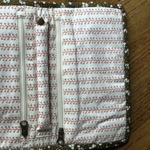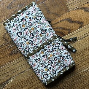 Garnet Hill Quilted Jewelry Roll Travel Bag Ditsy Floral Print Zip Pockets Ring