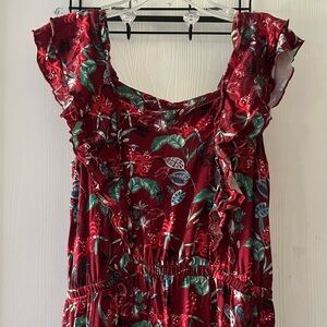Garnet Hill Red Floral Ruffle Sleeve Maxi Dress