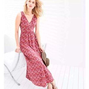 Garnet Hill Red Geometric Print Surplice Sleeveless Maxi Dress Size 10
