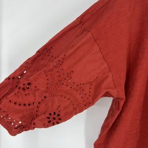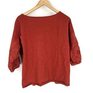 Garnet Hill Red/Orange Blouse with Embroidered Eyelet Sleeves