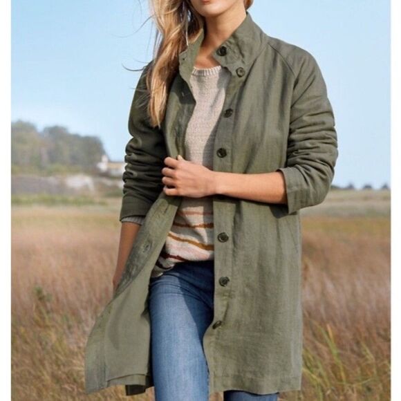 Garnet Hill Relaxed Linen Topcoat Green Size 4