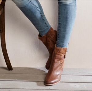 A classic riding boot takes a shortened ride, ending up at a versatile above ankle height that wins with dresses, skirts and rolled up jeans.