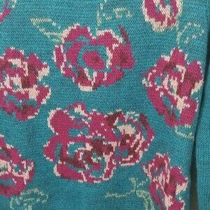 Garnet Hill Roses Wool Alpaca intarsia Sweater S