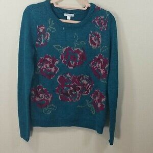 Garnet Hill Floral Wool Alpaca Sweater S