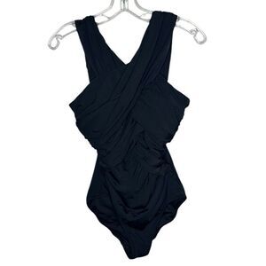Garnet Hill Ruched-Front Black One Piece Bathing Suit. Size4. Excellent like new condition.