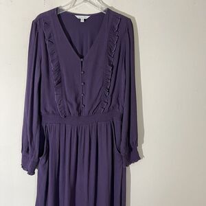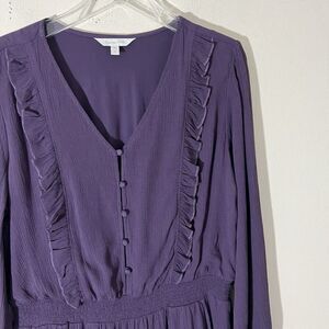 Garnet Hill Ruffle Crêpe Dress Maxi Plum Purple Longsleeve Pocket Peasant M New