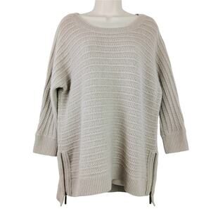 Garnet Hill SZ S Lambswool Angora Pullover Sweater Side Zips Tan