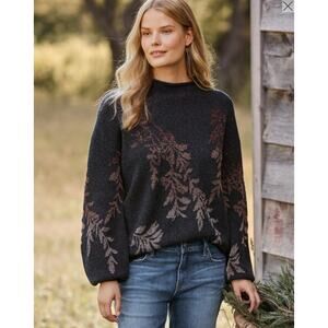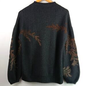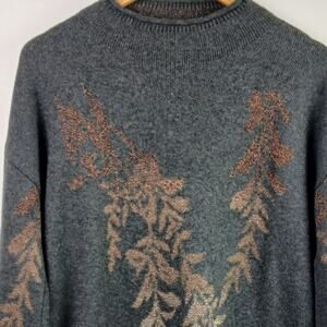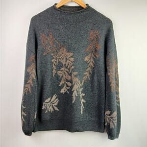 Garnet Hill SZ S Shimmering Floral Sweater Merino Wool/Cotton Relaxed Fit Gray