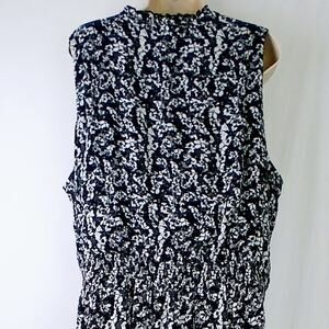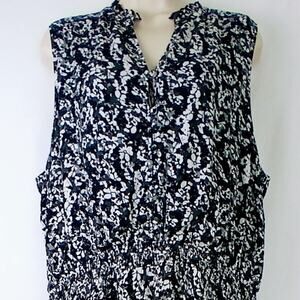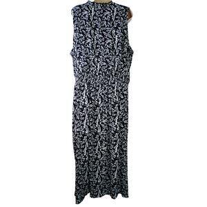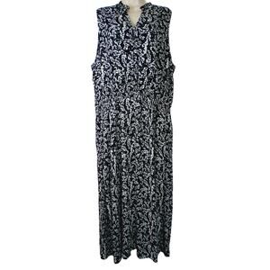 Garnet Hill SZ XL Ambrose Crêpe Dress Navy Blue White Floral Pockets