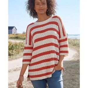 Garnet Hill SZ XL Chunky Crochet Sweater Orange Striped Beachy 100% Organic Cotton
