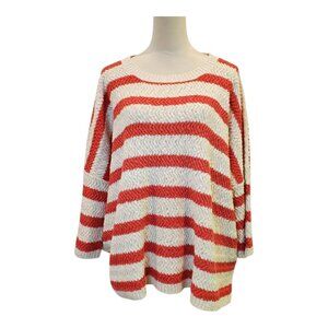 Garnet Hill SZ XL Chunky Crochet Sweater Orange Striped Beachy 100% Org. Cotton