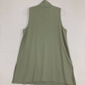 Garnet Hill Sage Green Turtle Neck Sleeveless Stretch Knit Side Slit Tunic Large