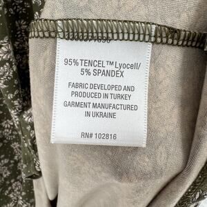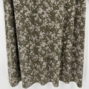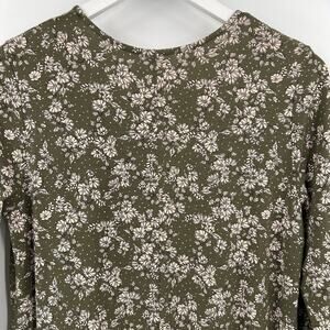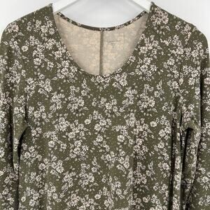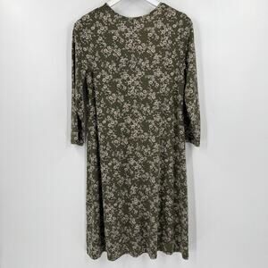 Garnet Hill Seamed Knit Trapeze Dress Olive Dot Floral 3/4 Sleeves Size Small