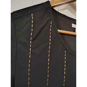 Garnet Hill Shift Beaded Dress Black Women Size 4 V Neck 3/4 Sleeves