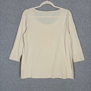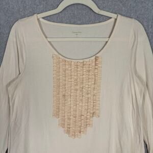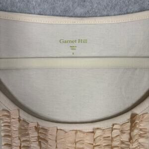 Garnet Hill Shirt Small Cream Ivory Ruffle Tuxedo Jersey Stretch Basic 3/4 Sleeve Classic Casual Corp Career Work Office Business Church Knit