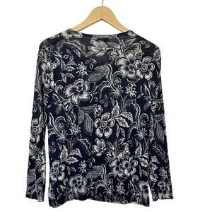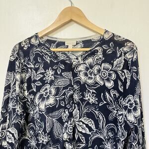 Garnet Hill Signature Eco Merino Wool Floral Cardigan Size L Button Down Fitted