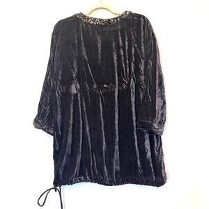 Garnet Hill Silk Blend Velvet V Neck Sequin Tie Blouse Sz 18 Purple Gray Boho