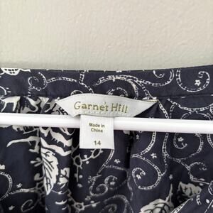 Garnet Hill Silk Navy White Floral V-Neck Blouse Size 14